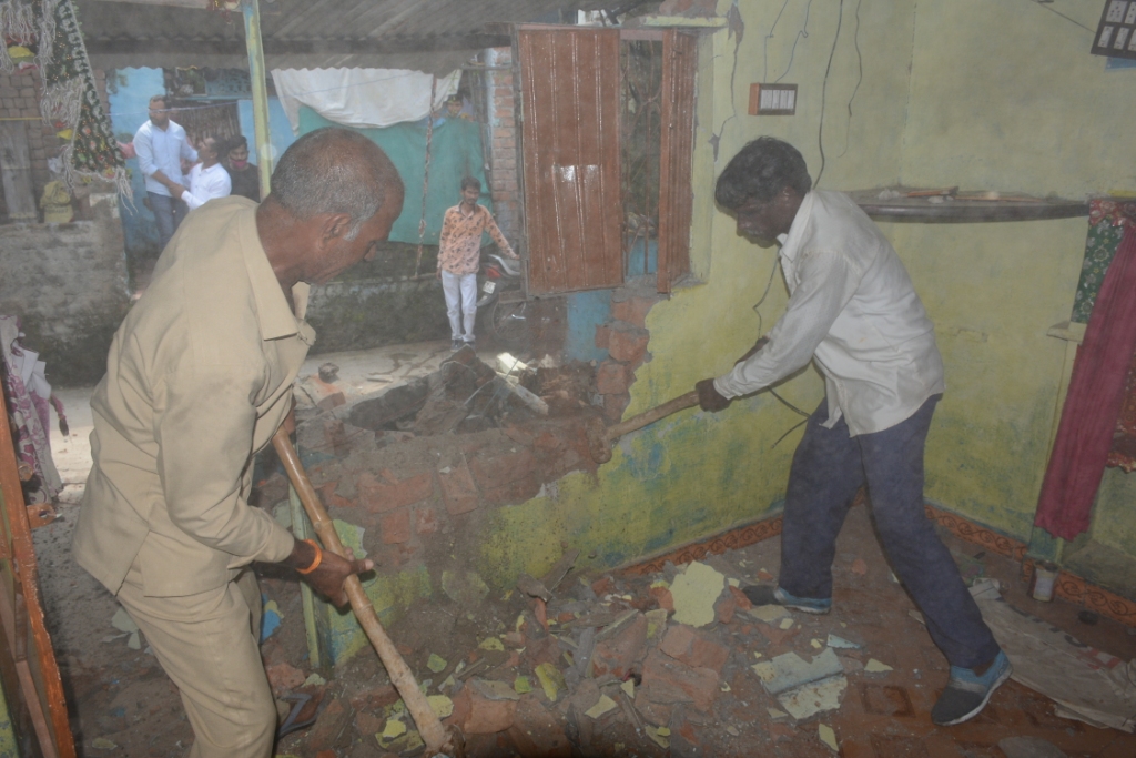 एकता नगर निवासी दीपक पिता नंदकिशोर अहिरवार (25) पर दुष्कर्म, जानलेवा हमले, अड़ीबाजी व आबकारी के सात प्रकरण दर्ज हैं। वह ऑटो चलाने की आड़ में गांजे और स्मैक की पुडिय़ा बच्चों से बिकवाता है। जानकारी पर एसपी सत्येंद्र कुमार शुक्ल ने नगर निगम से उसके मकान का रिकार्ड निकलवाया। पता चला उसने बिना अनुमति 800 स्क्वेयर फीट का मकान बना रखा है। नतीजतन शुक्रवार को सीएसपी वंदना चौहान, टीआई तरुण कुरील, ओपी अहीर, राममूर्ति शाक्य, जीवन भिंडोर व निगम अमले के साथ दीपक के घर पहुंची। भारी फोर्स देख दीपक रफूचक्कर हो गया, लेकिन उसकी मां व पत्नी विरोध करने लगी। बावजूद नगर निगम गैंग ने मकान जमींदोज कर दिया। याद रहे पुलिस व निगम गैंग ने गुरुवार को मुल्लापुरा में शहंशाह व विष्णुपुरा में सनी मराठा का मकान तोड़ा था। इसी के साथ अब तक 46 बदमाशों के मकान ध्वस्त किए जा चुके हैं।