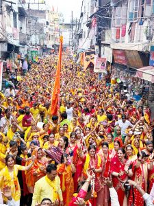 कावड़ यात्रा में शामिल हुई हजारों महिला