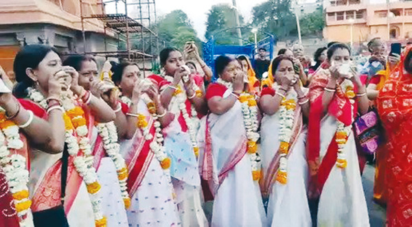 रामघाट पर ध्वज पूजन, शंखनाद के साथ नववर्ष का स्वागत